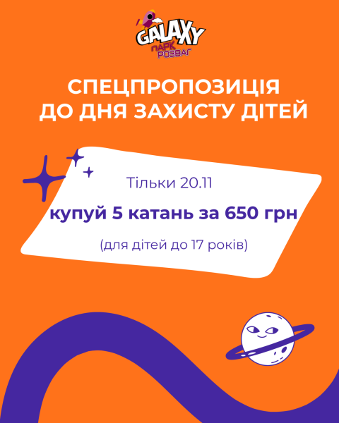 20 листопада парк розваг Galaxy в ТРЦ Lavina святкує День захисту дітей 😍