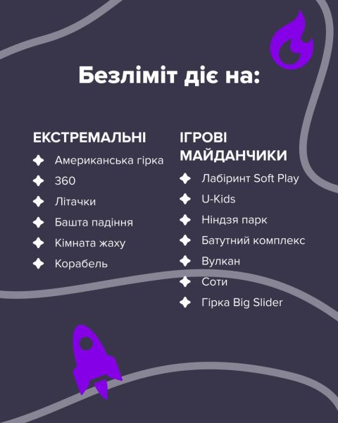 ✨ Безліміт на всі атракціони всього за 1050 грнТак, так, ти все правильно прочитав — катаєшся скільки хочеш, хоч до закриття!
